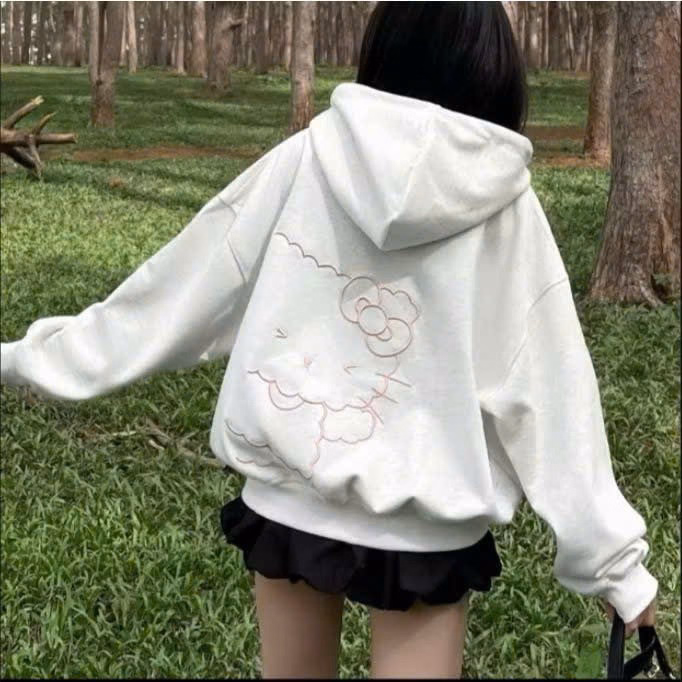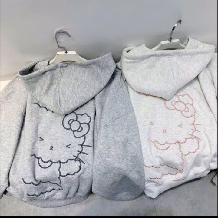 003 Áo Khoác Nỉ Mũ 2 Lớp Thêu Mèo Kitty