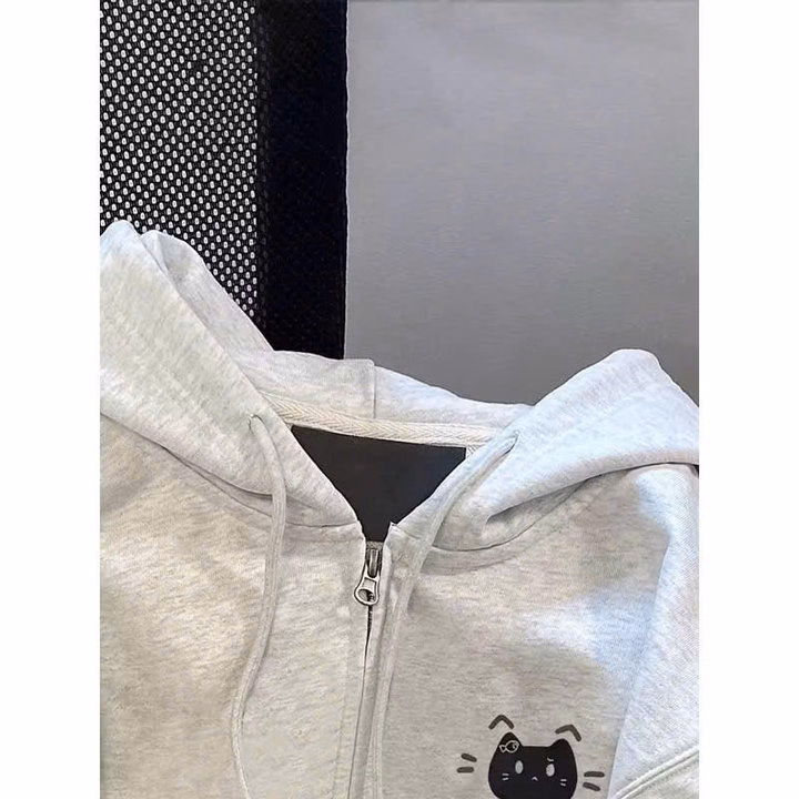 003 Áo Khoác Nỉ Mũ 2 Lớp Thêu Mèo Kitty