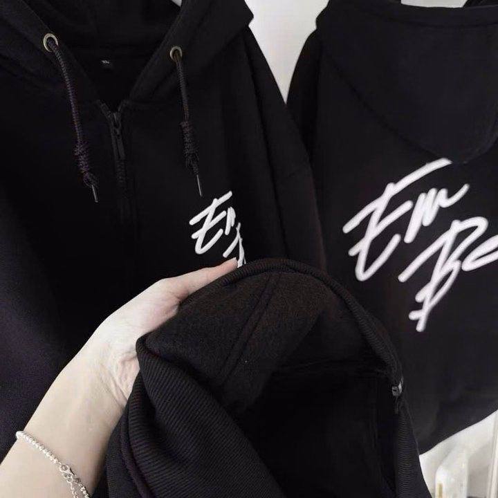 015 Áo Khoác Nỉ Mũ 2 Lớp In Chữ Em Bé