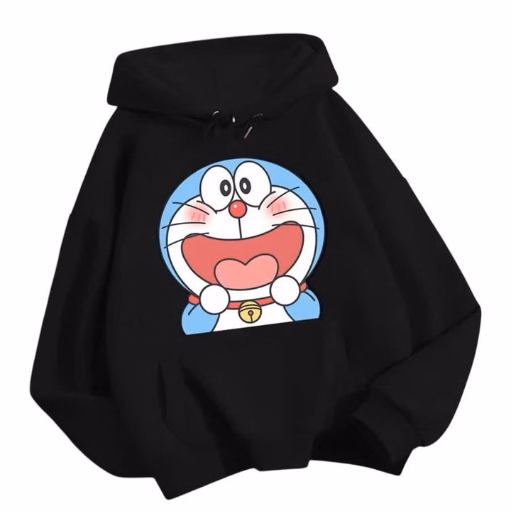 021 Áo Hoodie Mũ 2 Lớp In Hình Doraemon Unisex Form Rộng