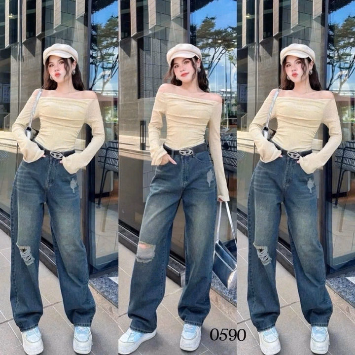 [3 Size 40-56kg Tùy Chiều Cao] Quần Jean Suông Nữ Rách 590 Phong Cách Hàn Quốc Trẻ Trung Thời Trang – Be Yourself