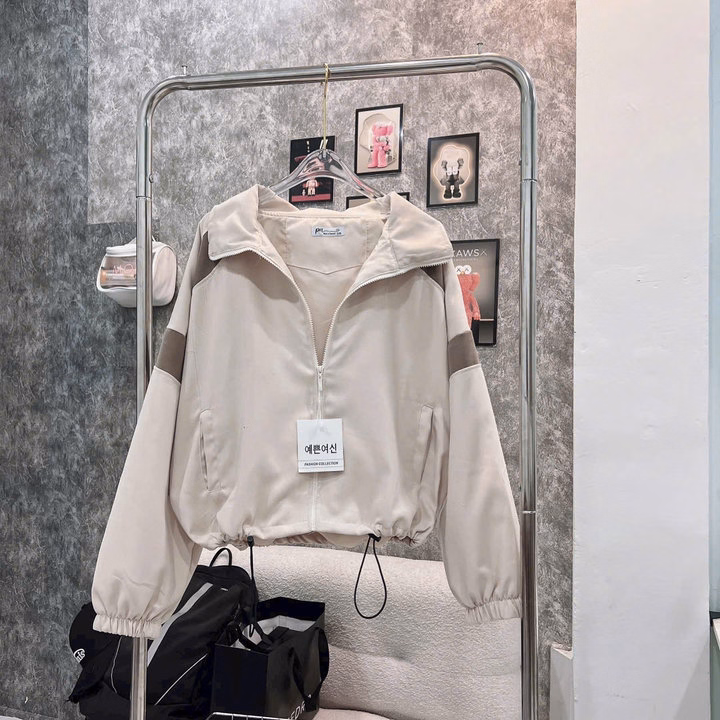 Áo Khoác Dù Gió 2 Lớp Croptop Nữ Thiết Kế Khóa Kéo Cổ Có Nút Bấm – Htm Fashion