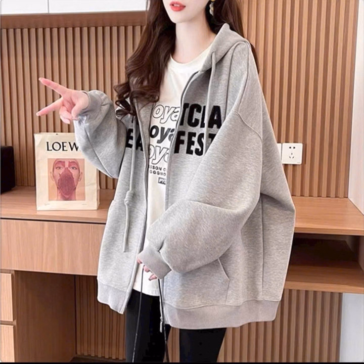 Áo Khoác Dây Kéo Vải Nỉ Phối Sọc Thân In Nổi Chữ Ở Mũ, Có Túi Trong Rộng Tp60 – Golden Dream