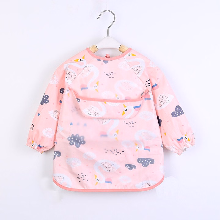 Áo ăn dặm có máng được thiết kế như 1 chiếc áo mặc bình thường nên rất thoáng mát. Phần máng hứng được thiết kế ngay trước ngưc giúp hứng thức ăn rơi vãi trong khi bé ăn. Với chất liệu poly giúp việc lau chùi vệ sinh áo cực kỳ dễ dàng và nhanh chóng