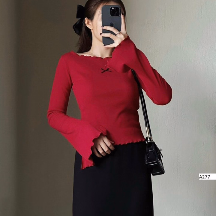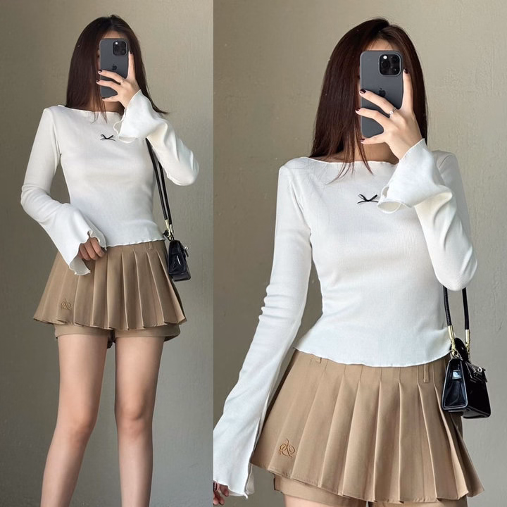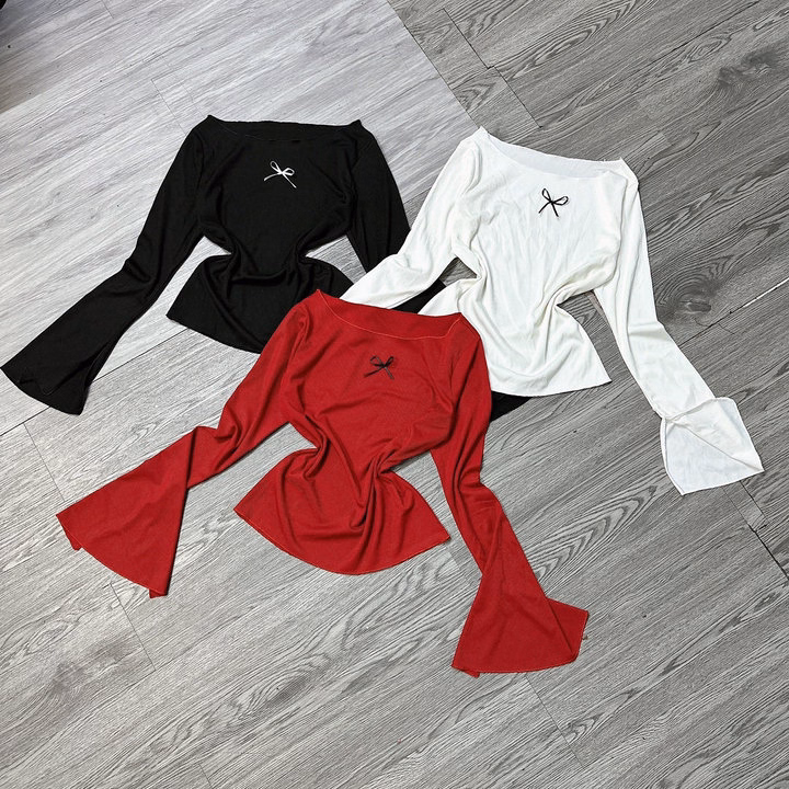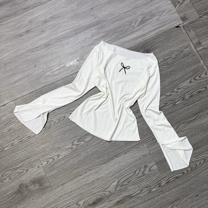 Tên sản phẩm: Áo Bẹc Vai Tay Loe Đính Nơ – Lê Phương Boutique
