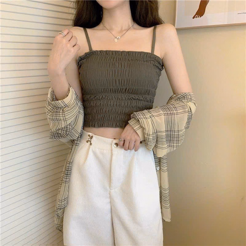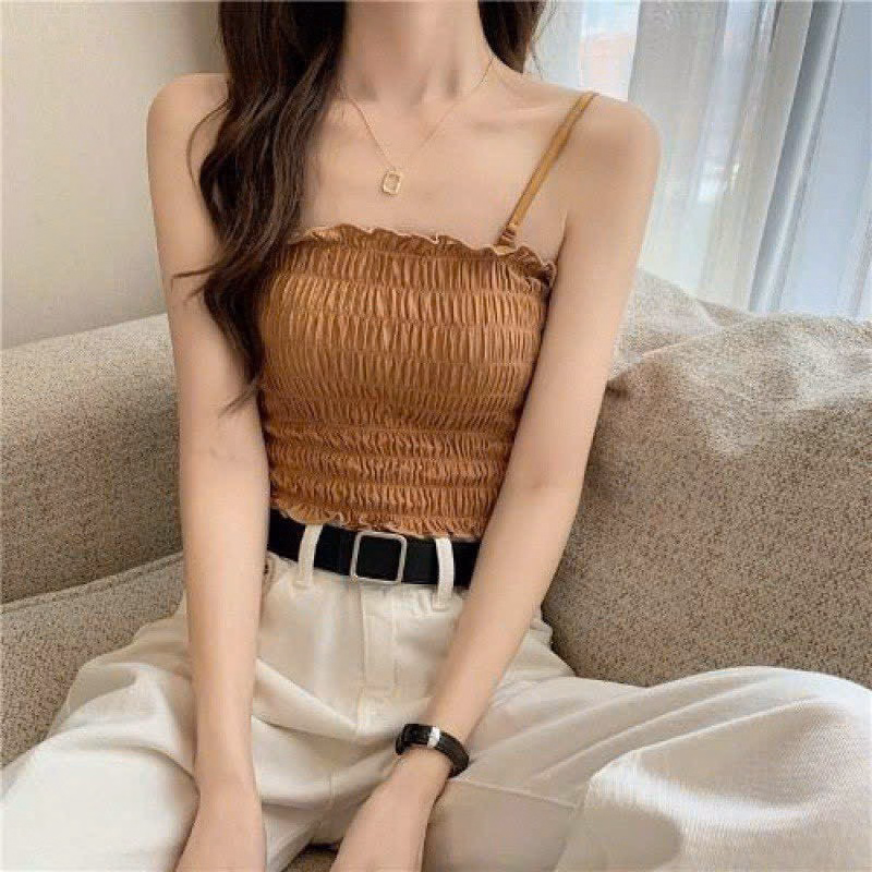 3/ Thiết kế : Áo Bra nhún xinh xắn , dây áo có thể tháo rời mặc thành áo cúp ngực