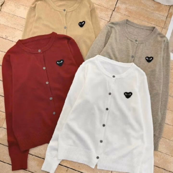 Áo cadigan len dáng vừa dài tay cổ tròn phối tim trước ngực siêu xinh màu basic dễ phối đồ