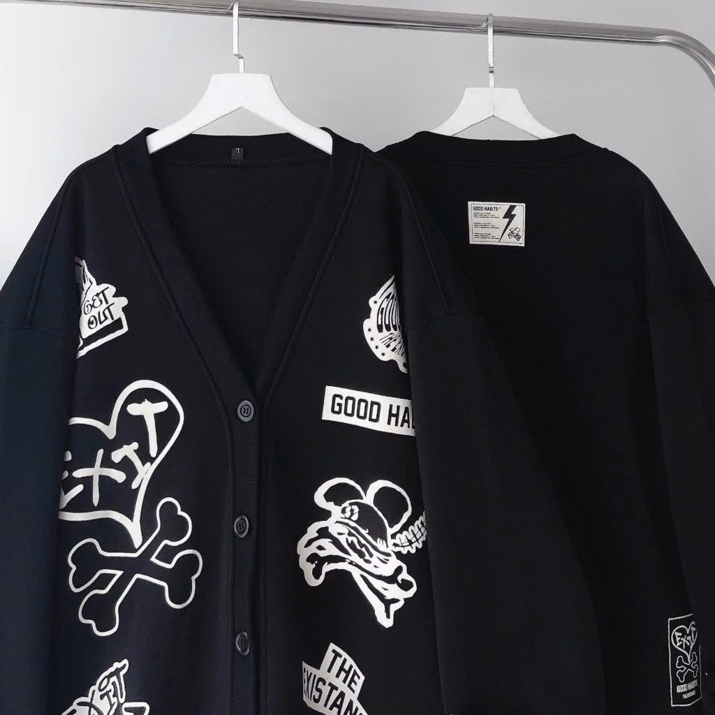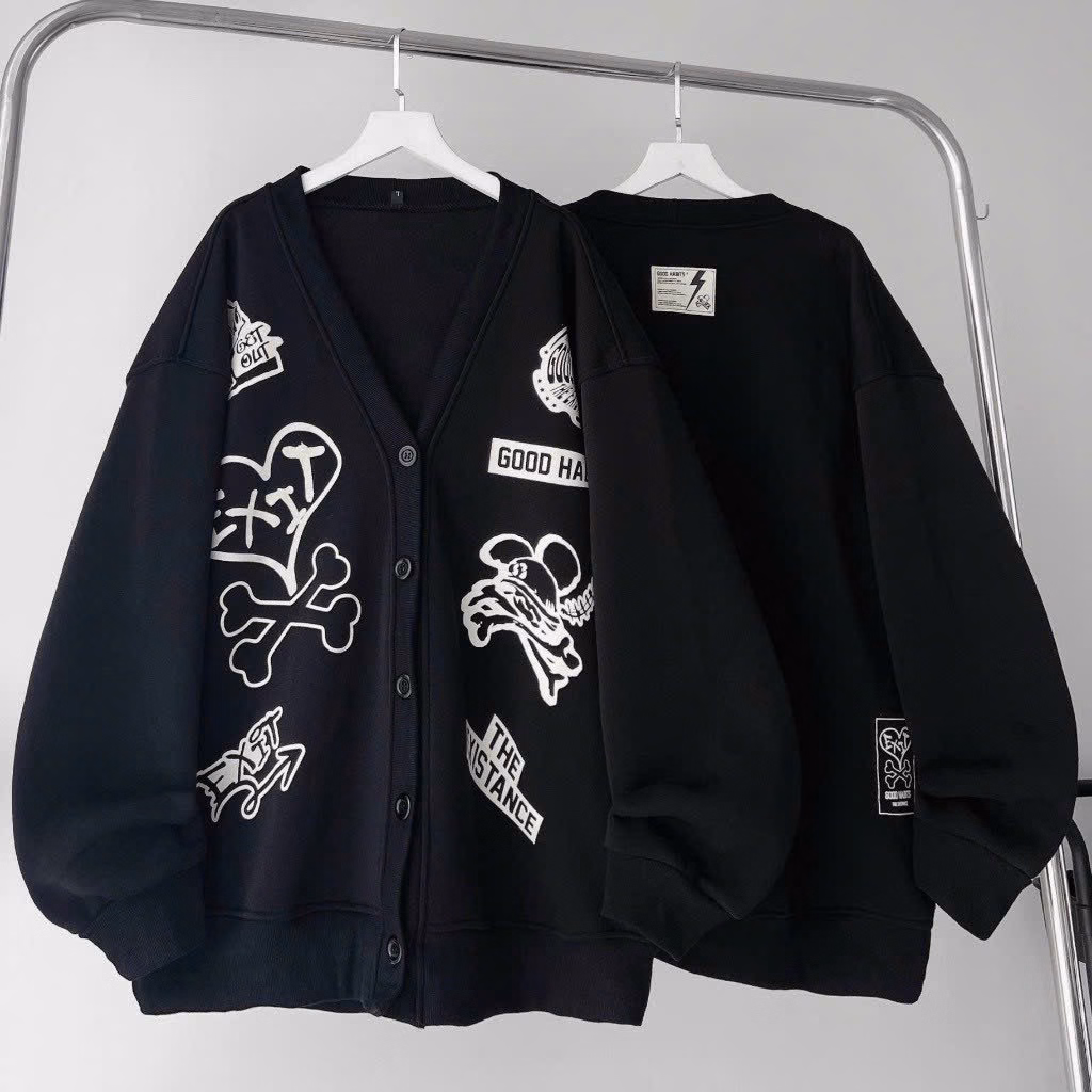 Áo Cadigan Nam Nữ Vải Nỉ In Hình Xương Chéo Form Rộng Tp66 – Phương Store