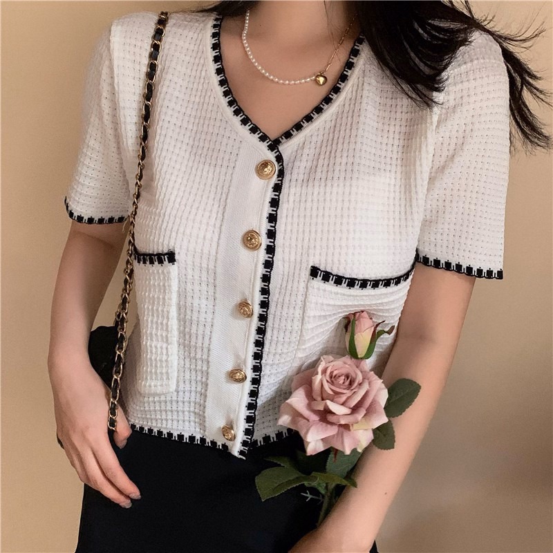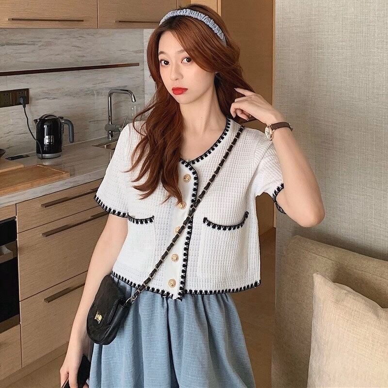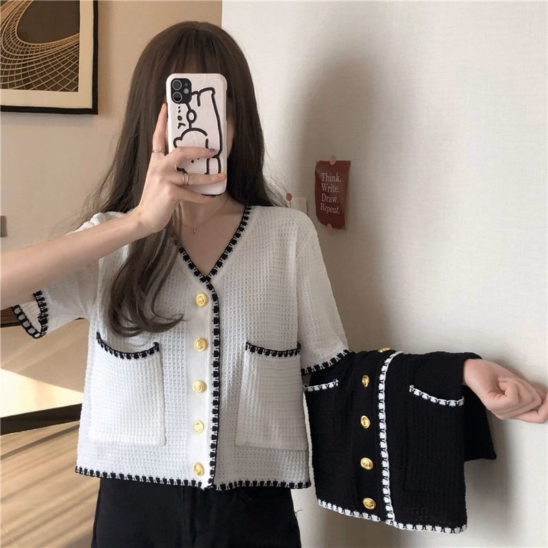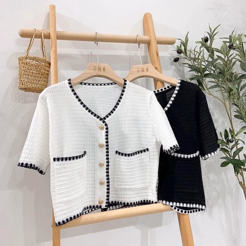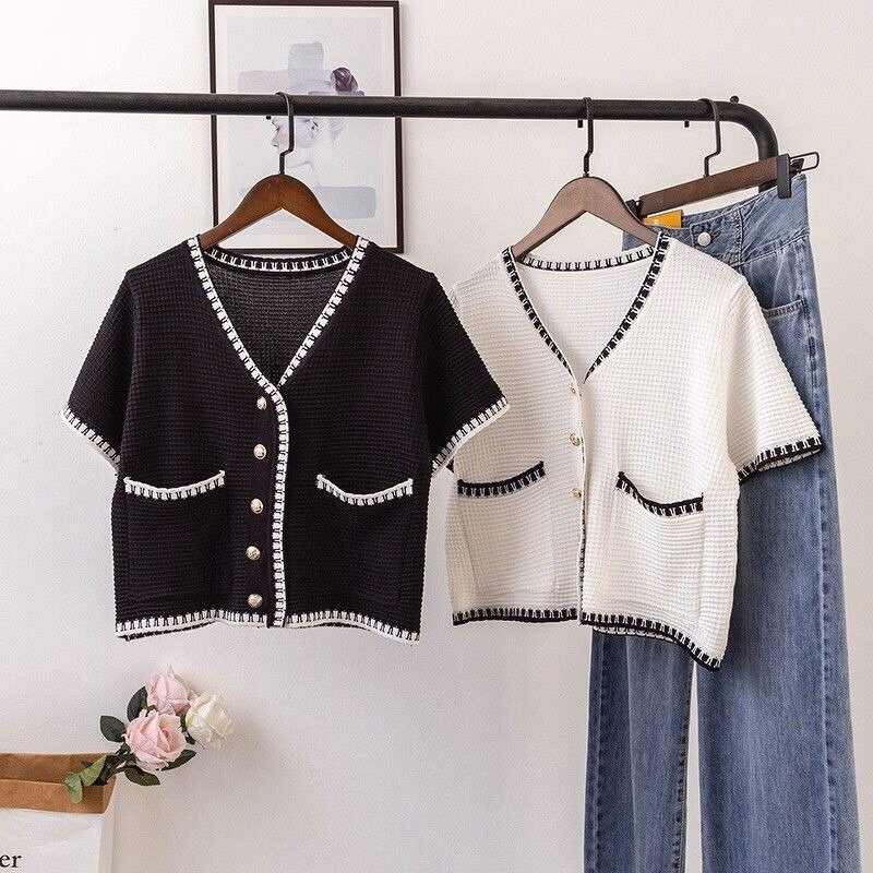 Áo Cardigan Cộc Tay Cổ V Phối Viền Dáng Lửng Cực Trend Sldca178 – Diepchi Fashion