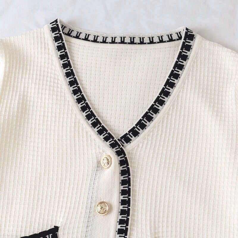 Áo Cardigan Cộc Tay Cổ V Phối Viền Dáng Lửng Cực Trend