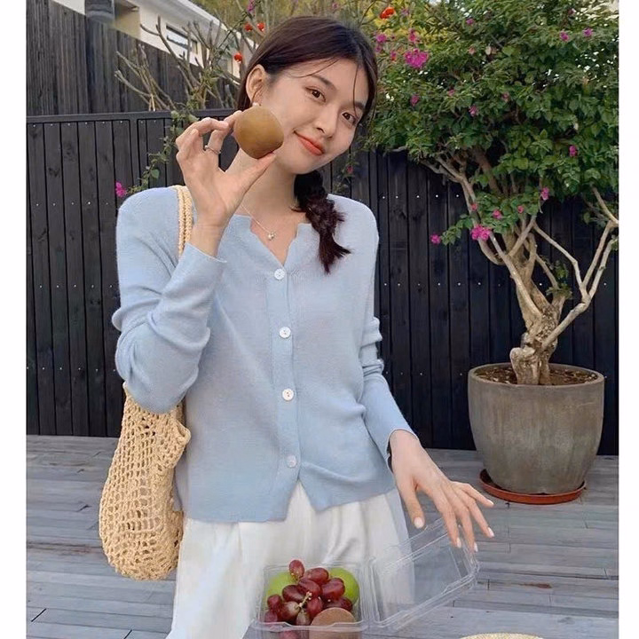 Áo Cardigan Thu Đông , Chất Liệu Len Trơn 4 Khuy Phong Cách Hàn Quốc – Chipxinhxk