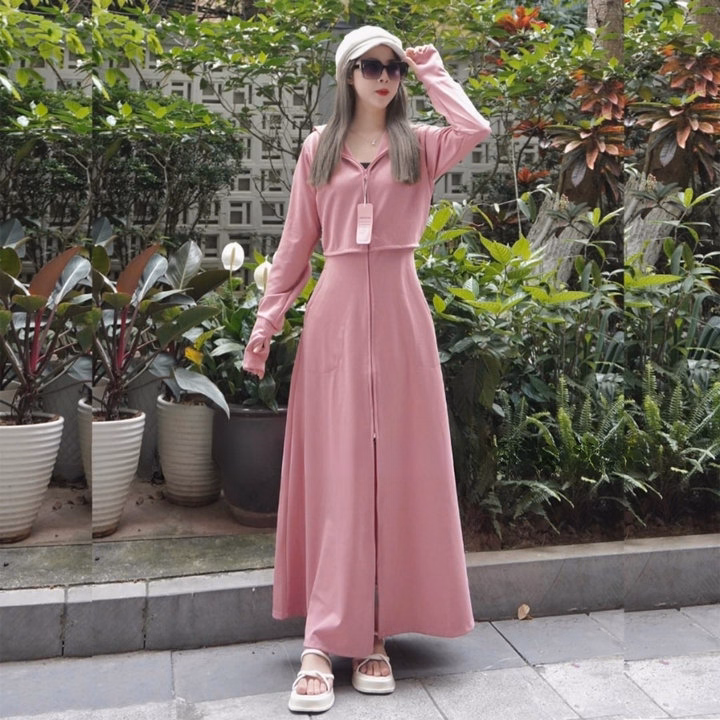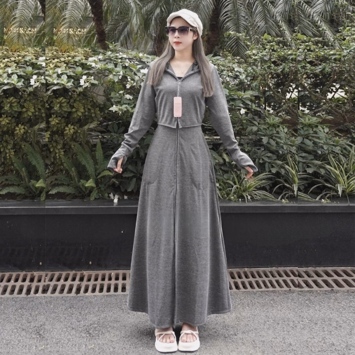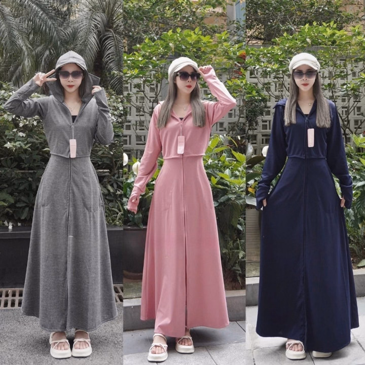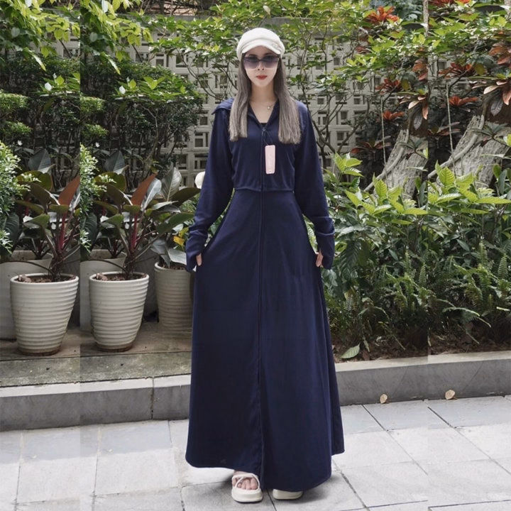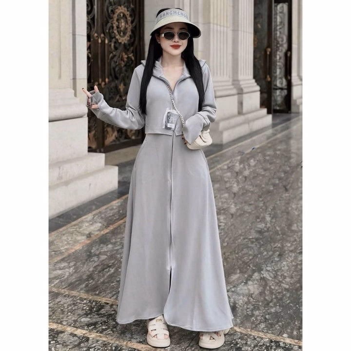 – Aó được thiết kế 2 tầng với phần áo trên có dáng croptop, tay dài che kín mu bàn tay và có mũ trùm đầu. Phần dưới được thiết kế 1 lớp, dáng xòe giúp bảo vệ toàn diện cơ thể dưới tác hại của ánh nắng và cũng cực kì nhanh gọn, tiện lợi