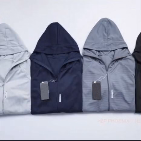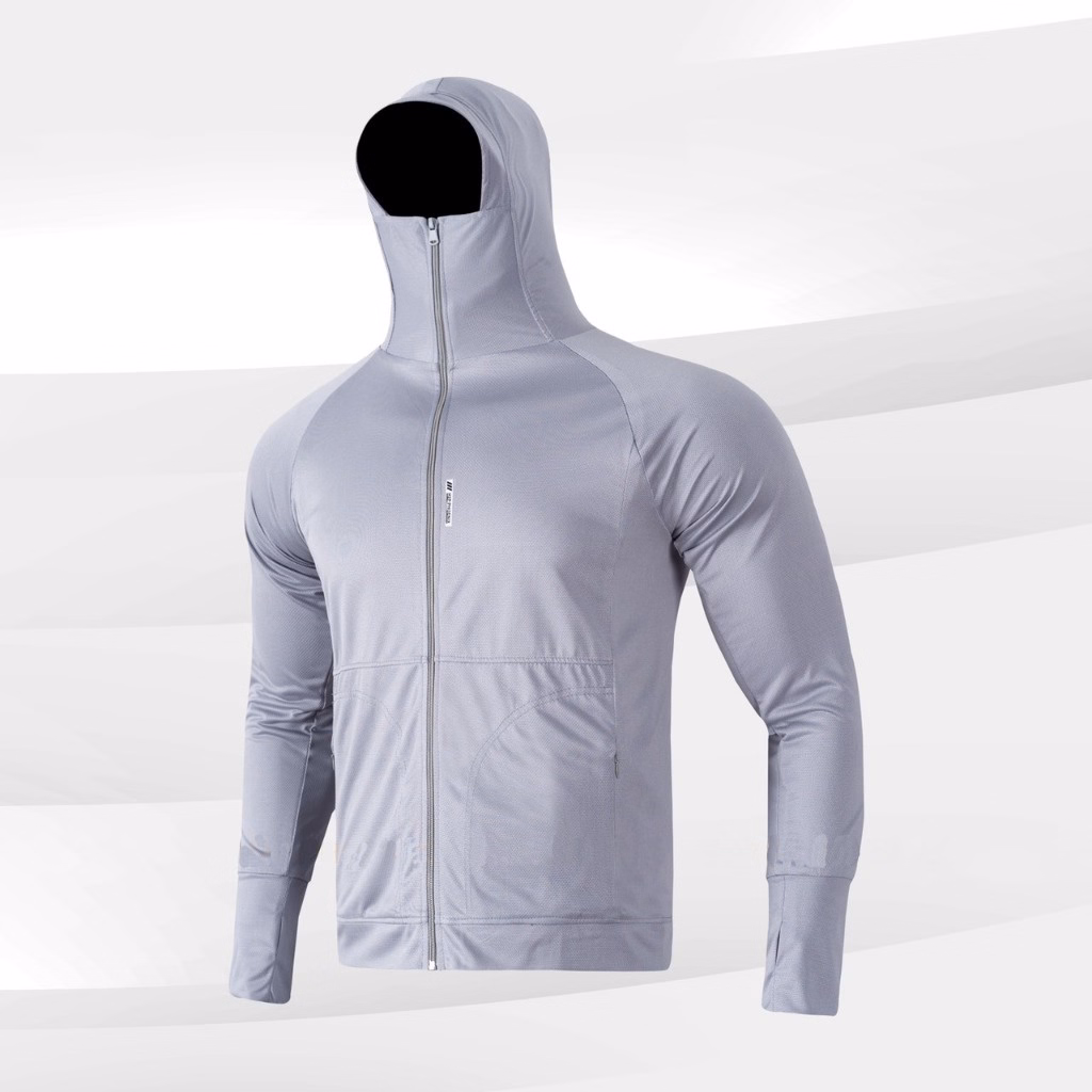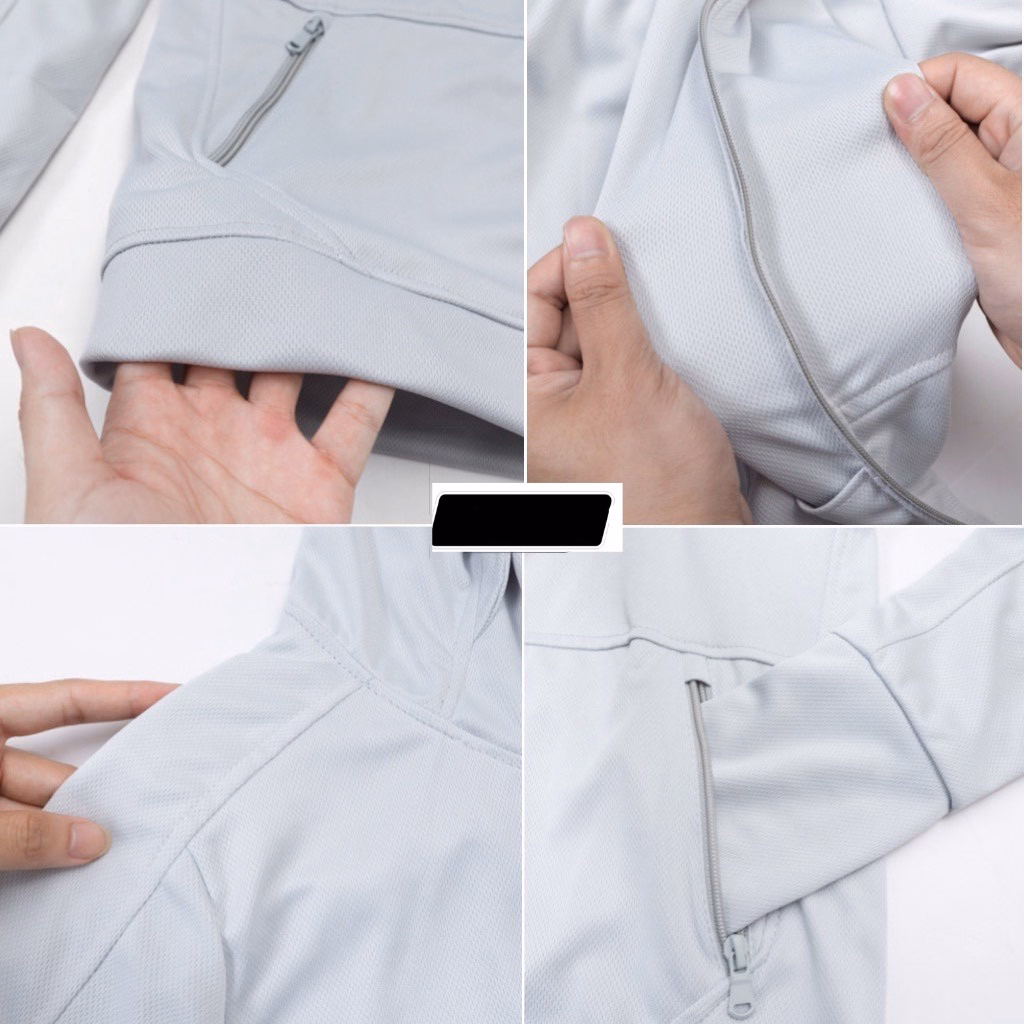 Tay áo dài với độ che phủ cao kết hợp với mũ trùm đầu tăng cường khả năng chống nắng.