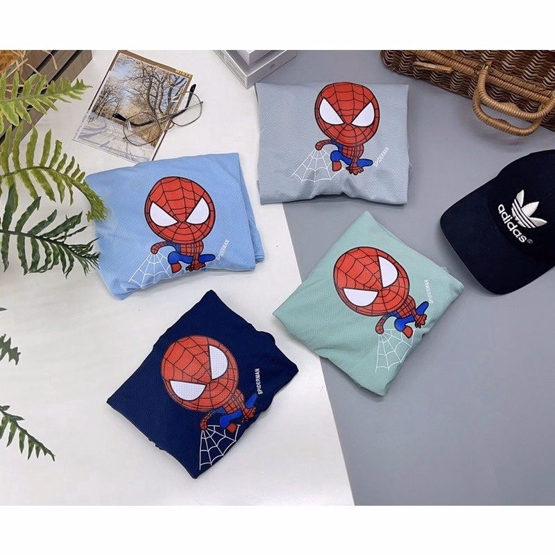 Áo in hình người nhện hoạt hình chibi đáng yêu, thu hút tầm nhìn của các bé.