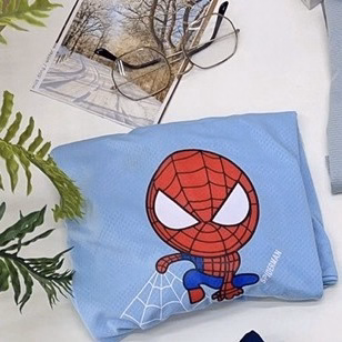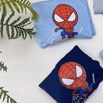 Áo in hình người nhện hoạt hình chibi đáng yêu, thu hút tầm nhìn của các bé.