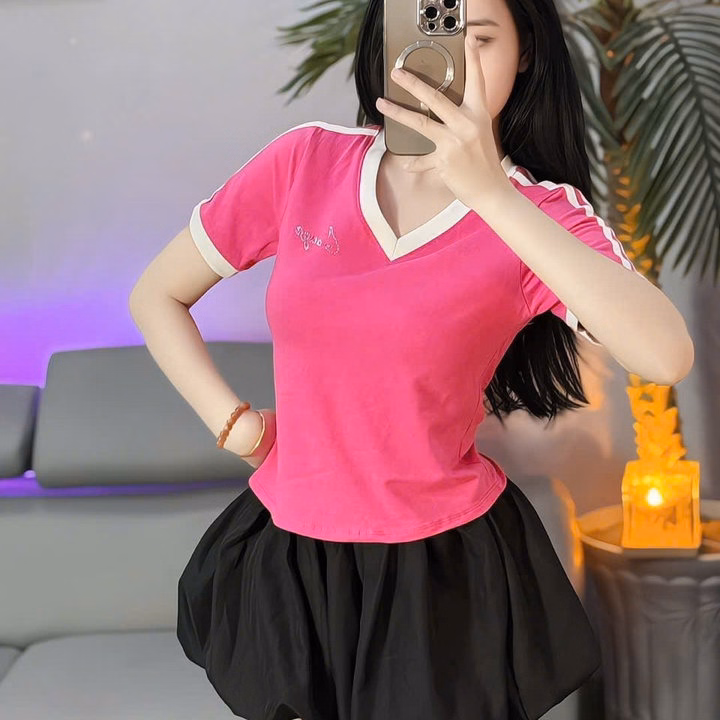 Áo ôm body giúp bạn tôn dáng cực xinh. Mã này vải co giãn tốt nên lúc nhận nhìn áo sẽ tương đối nhỏ.