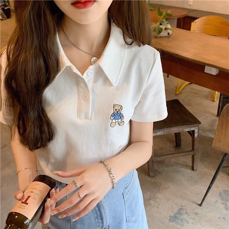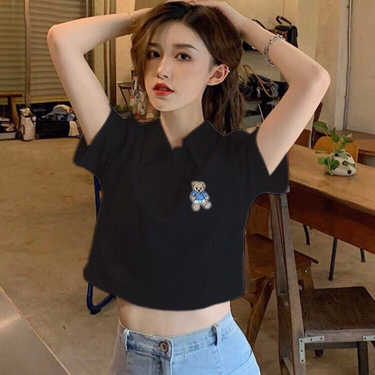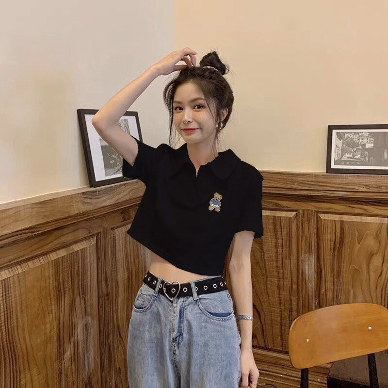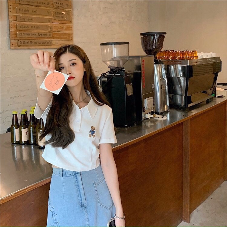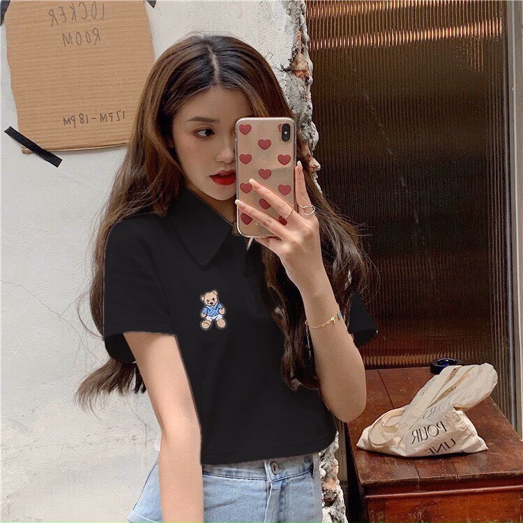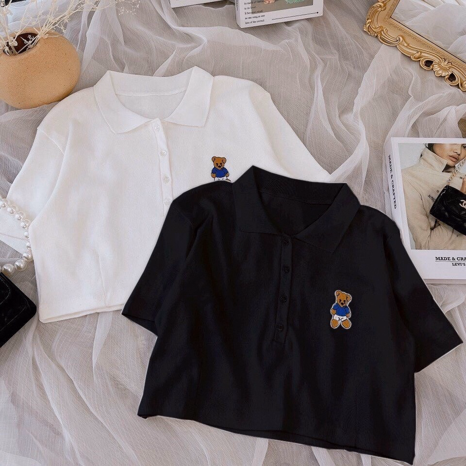 Áo Croptop Họa Tiết gấu kiểu dáng áo dáng croptop thêu gấu xinh. Áo có màu đen, trắng. Chất liệu vải rip loại đẹp dày dặn mềm mịn co giãn tốt.