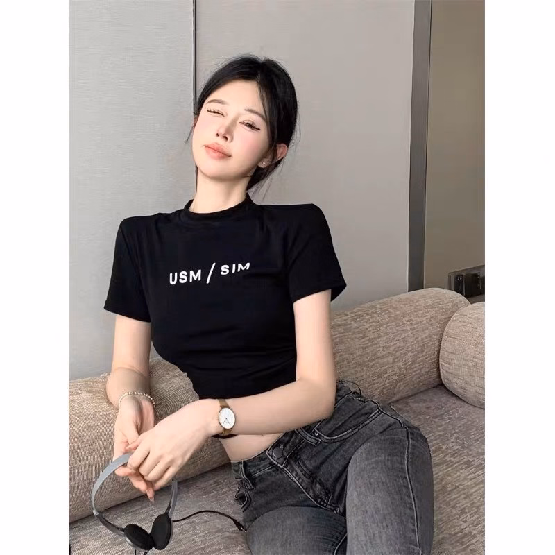 Áo Croptop Thun Rip Cổ Lọ Usm Sim – Lê Phương Boutique