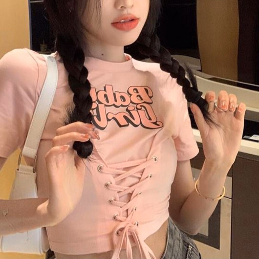Áo Crotop Baby Đan Trước Cổ Tròn Tay Ngắn Ôm Body Ug839 – Nana House