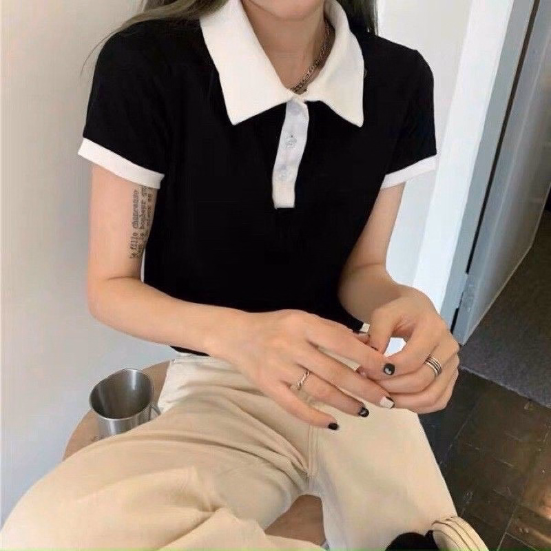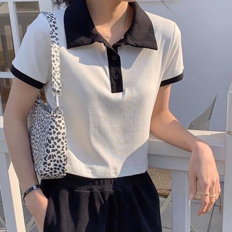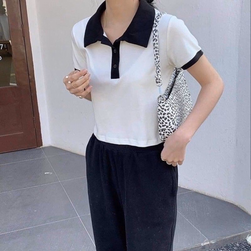 Áo Crotop Cổ Polo Phối Màu Đen Trắng Ug315 – Nana House