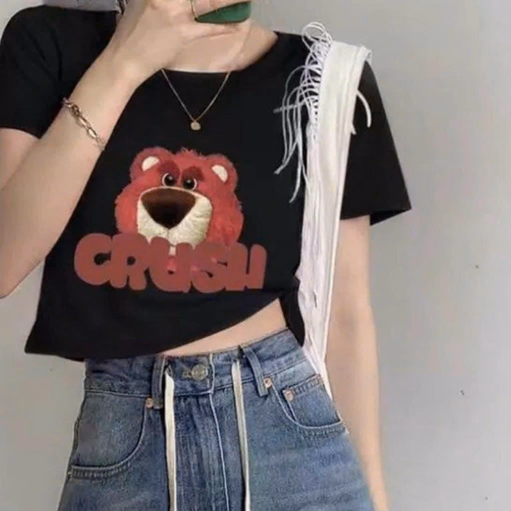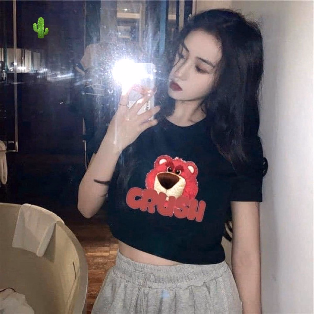 Áo Crotop Ôm Body Nữ Gấu Dâu Cổ Tròn Tay Ngắn Sa146 – Sam Store