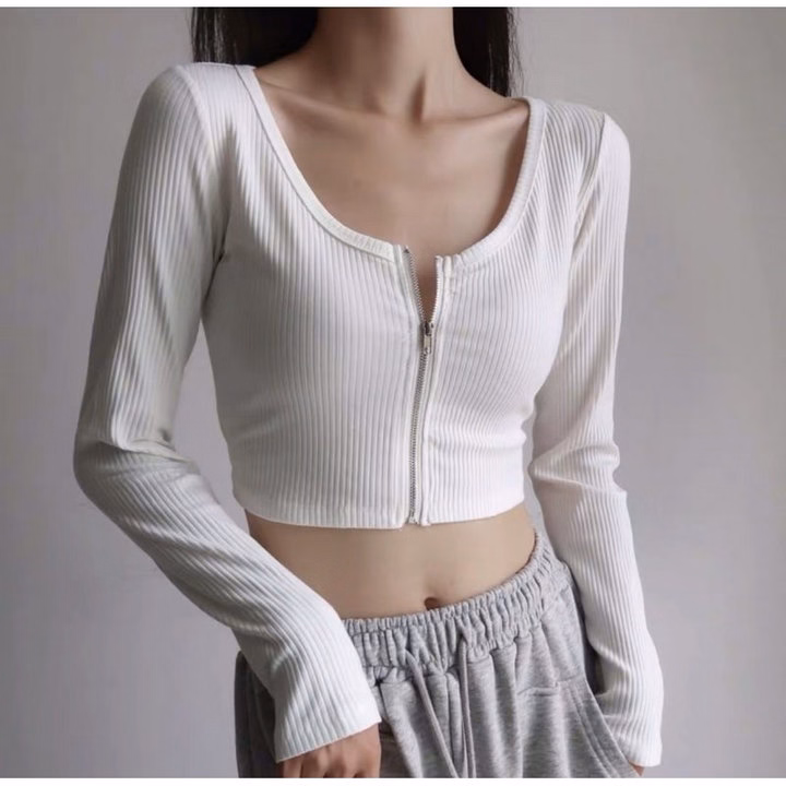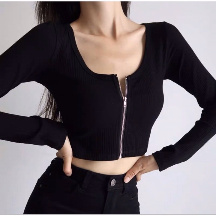 Áo Crotop Tay Dài Nữ Dây Kéo Ngực Thun Gân Gu329- Sam Store