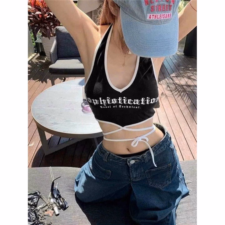 Áo Crotop Yếm Viền Trắng Kết Hợp Dây Quấn Bụng Ôm Body Q24- Sam Store