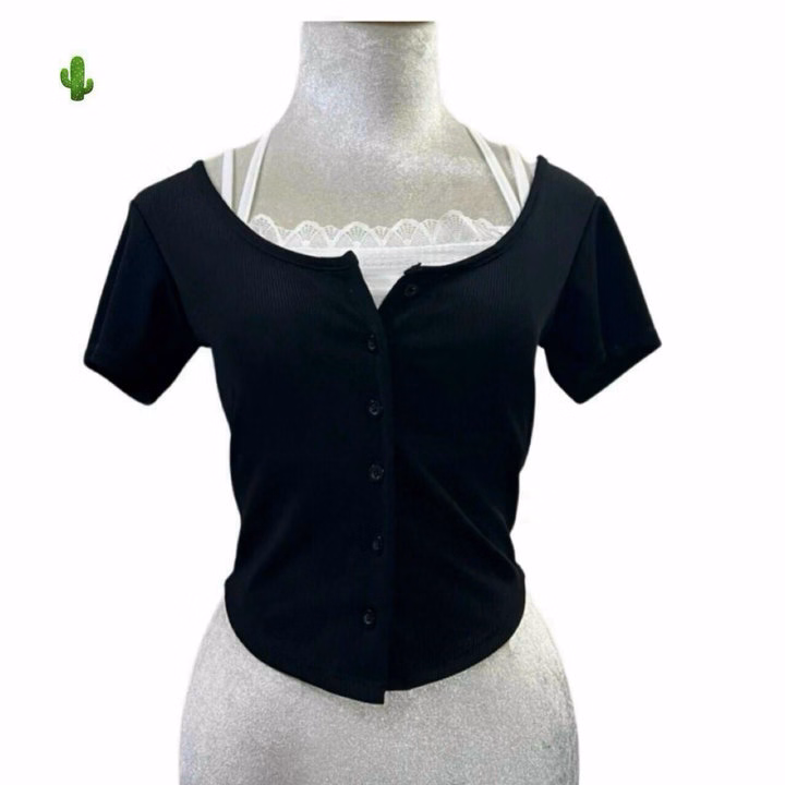 Áo Cúc Phối Yếm Ren Chất Gân Tăm – Lê Phương Boutique