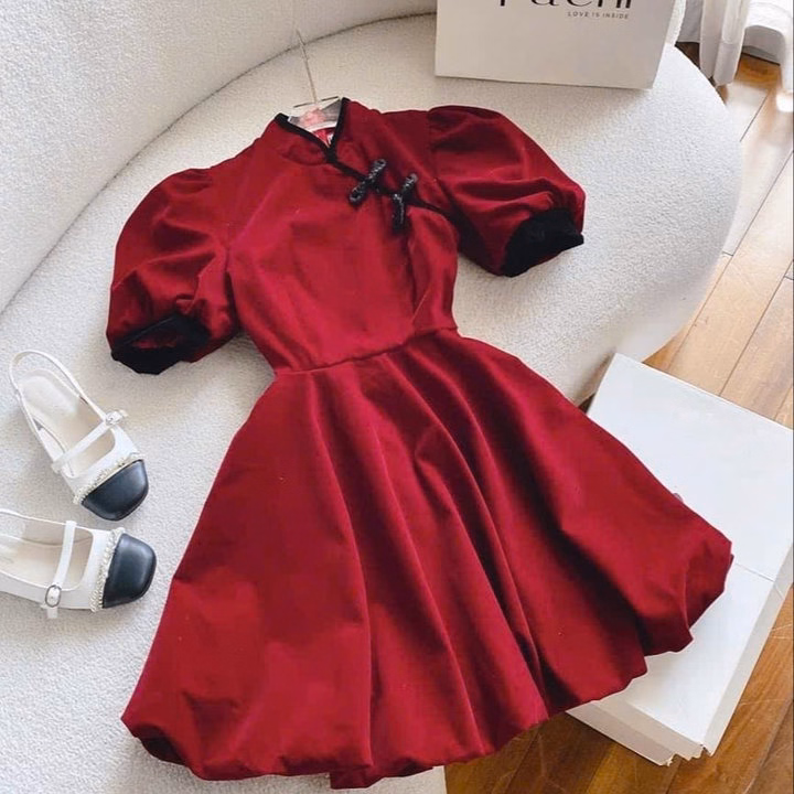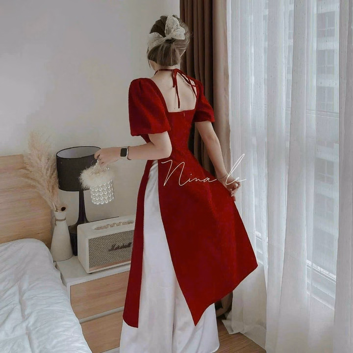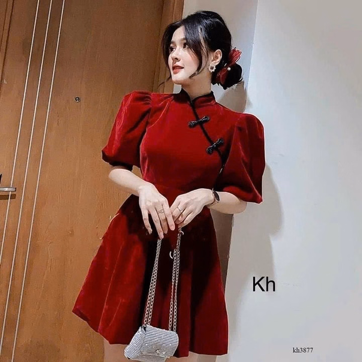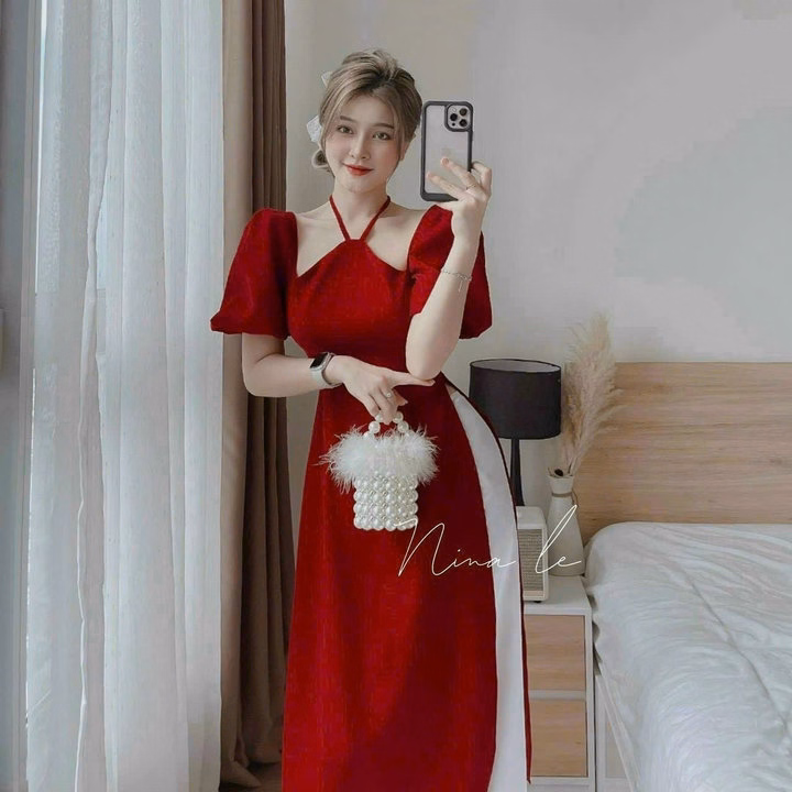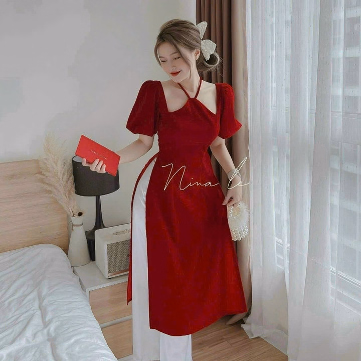 Siêu phẩm mùa lễ hội là chiếc áo dài cách tân màu đỏ may mắn với cổ yếm , cổ tàu, được làm từ chất liệu tuyết nhung sang trọng. Thiết kế phong cách Trung Hoa truyền thống, phù hợp với mùa lễ hội và mang lại sự xinh đẹp, trẻ trung và năng động cho người mặc.