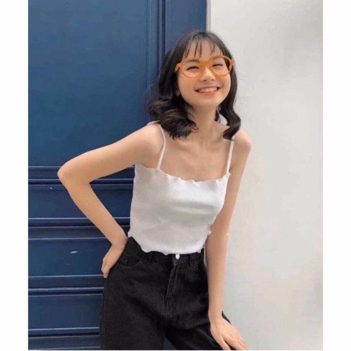 Áo Dây Bún Phối Diềm Chất Thun Tăm Hàn Quốc Co Dãn Thoải Mái , Dễ Chịu