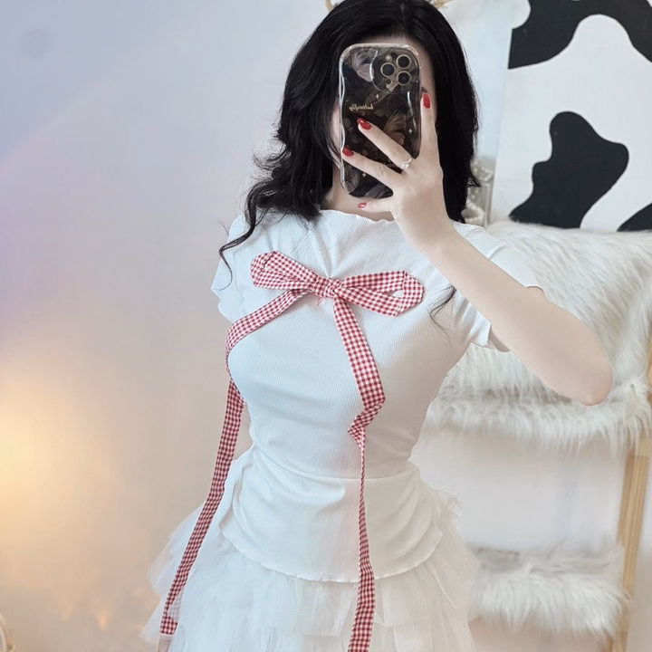 Áo Đính Nơ Dài Vải Tăm Lạnh – Lê Phương Boutique