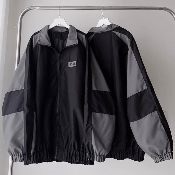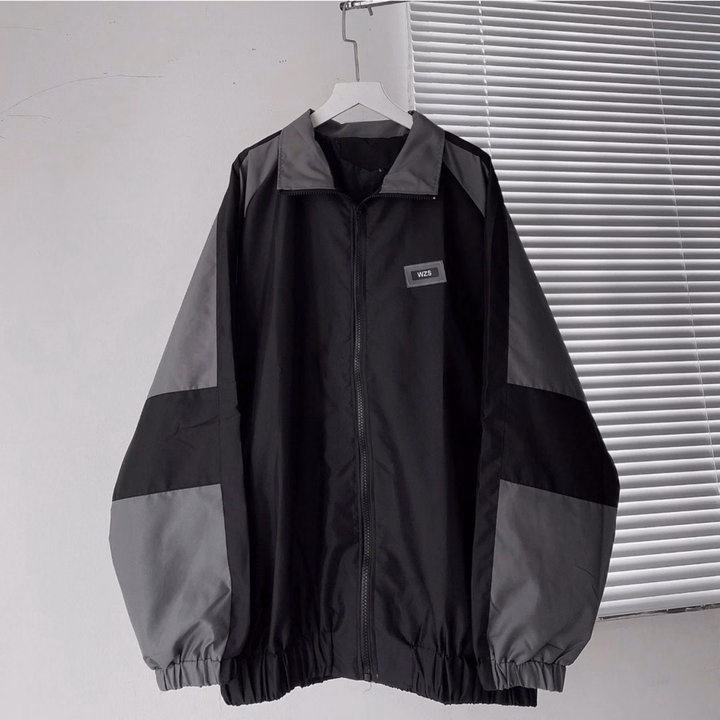 Áo Gió 2 Lớp Phối Màu Đen Xám Thêu Chữ Wzs