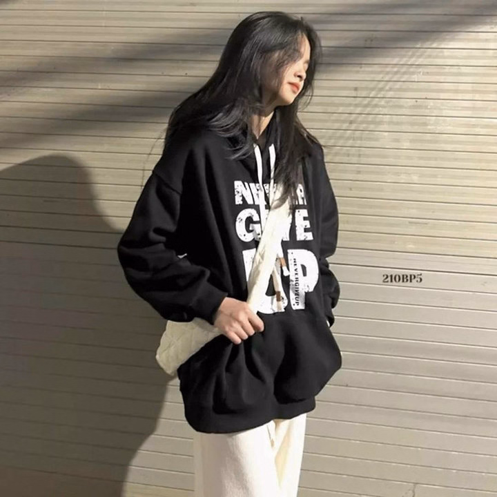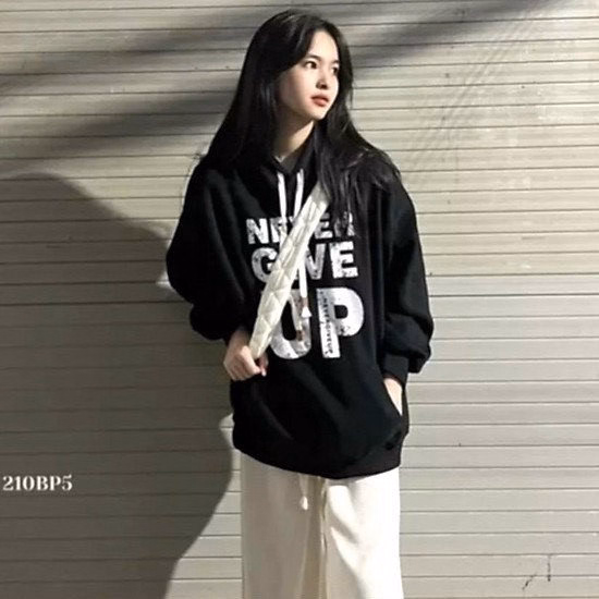 Áo Hoodie Cặp Đôi Nam Nữ Form Rộng Có Nón Tròng Đầu In Chữ Never Give Up -Htm Fashion