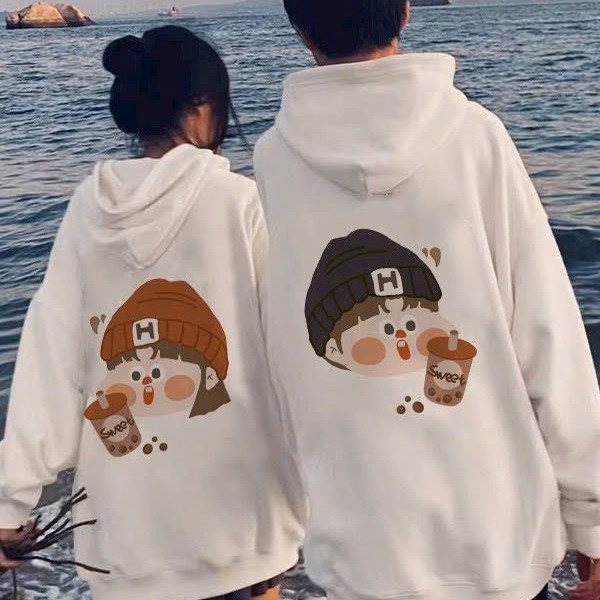 Tên sản phẩm: Áo Hoodie Coupe Nam Nữ In Hình Cô Bé Cậu Bé Trà Sữa Vải Nỉ Form Rộng Unisex Tp798 – Golden Dream