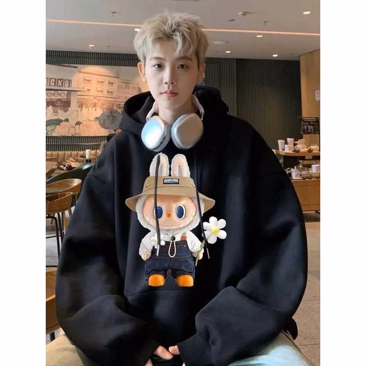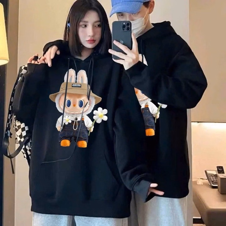🍭 Áo Hoodie Unisex Form Rộng Nam Nữ In Hoạt Hình Labubu