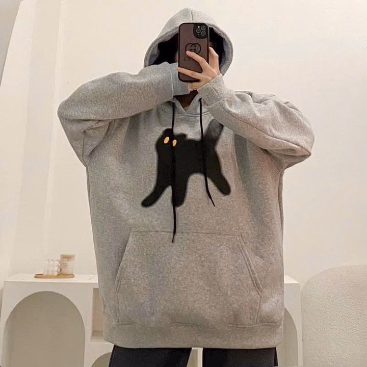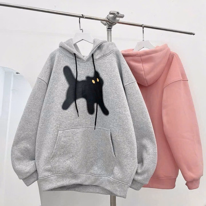 Áo Hoodie In Hình Mèo Đen Vải Nỉ Ngoại Dày Dặn Form Rộng Unisex Tp71 – Golden Dream