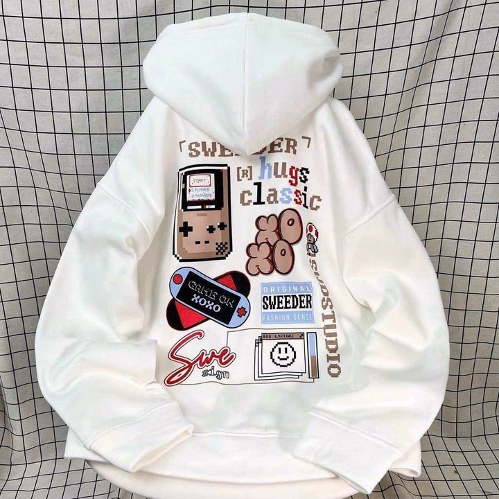 Áo Hoodie Nam Nữ Form Rộng Phối Khóa Kéo Có Nón In Hình Chữ Swe Xoxo -Htm Fashion