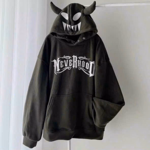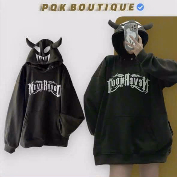 Áo Hoodie Nam Nữ Form Rộng Thiết Kế Cặp Sừng Ở Nón Như Hình Chất Nỉ Mịn Dày -Htm Fashion