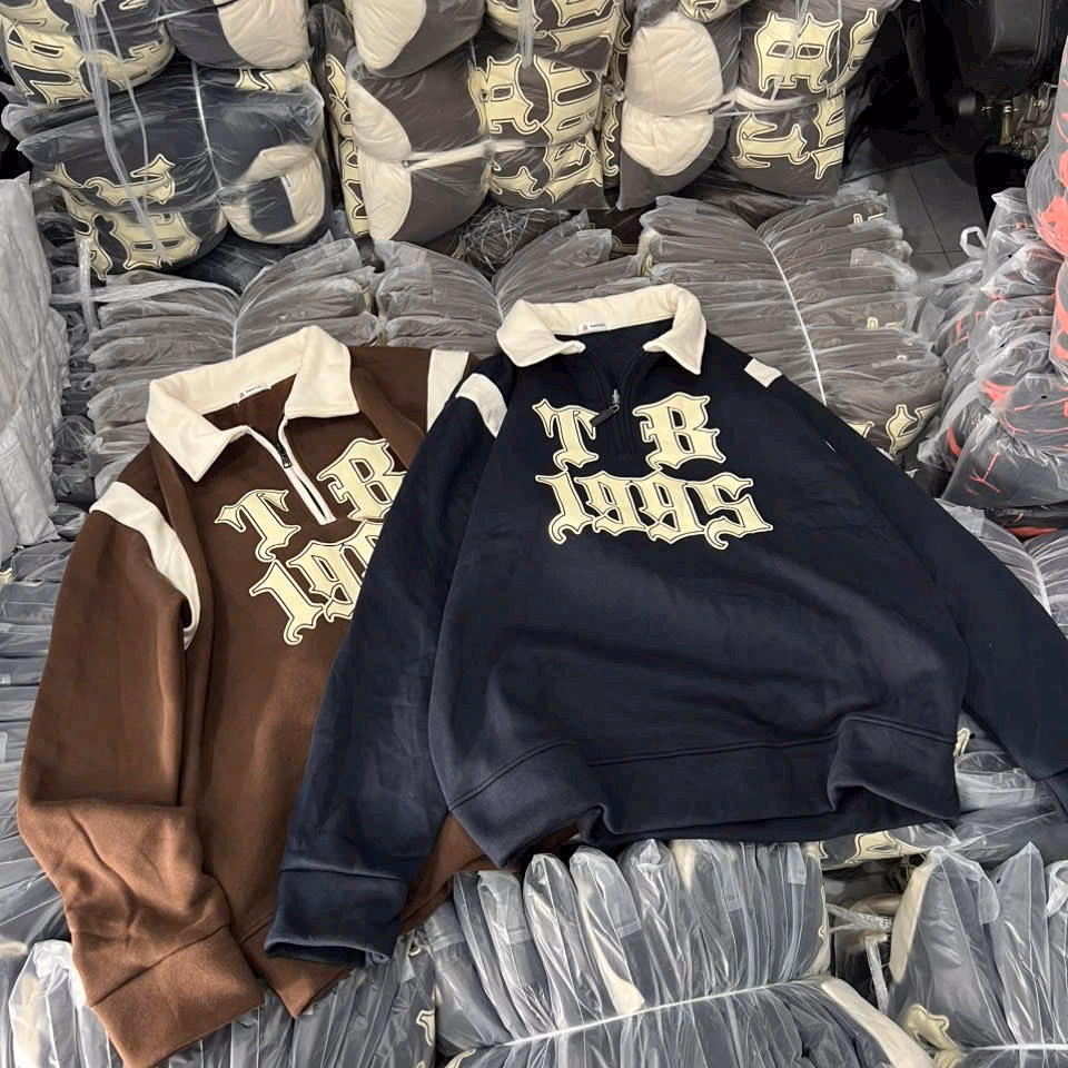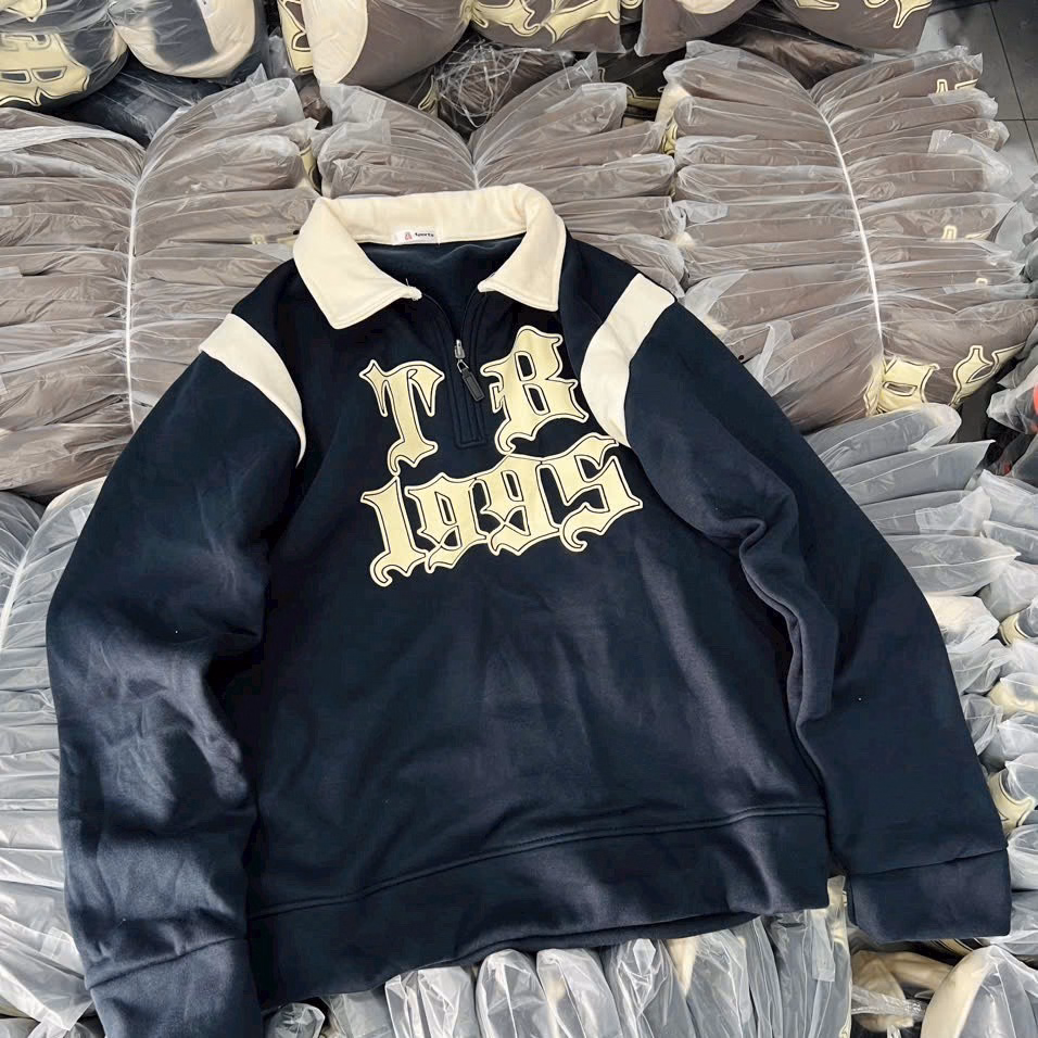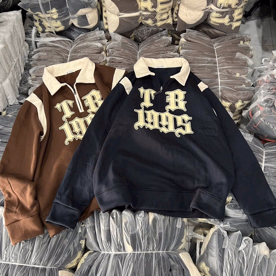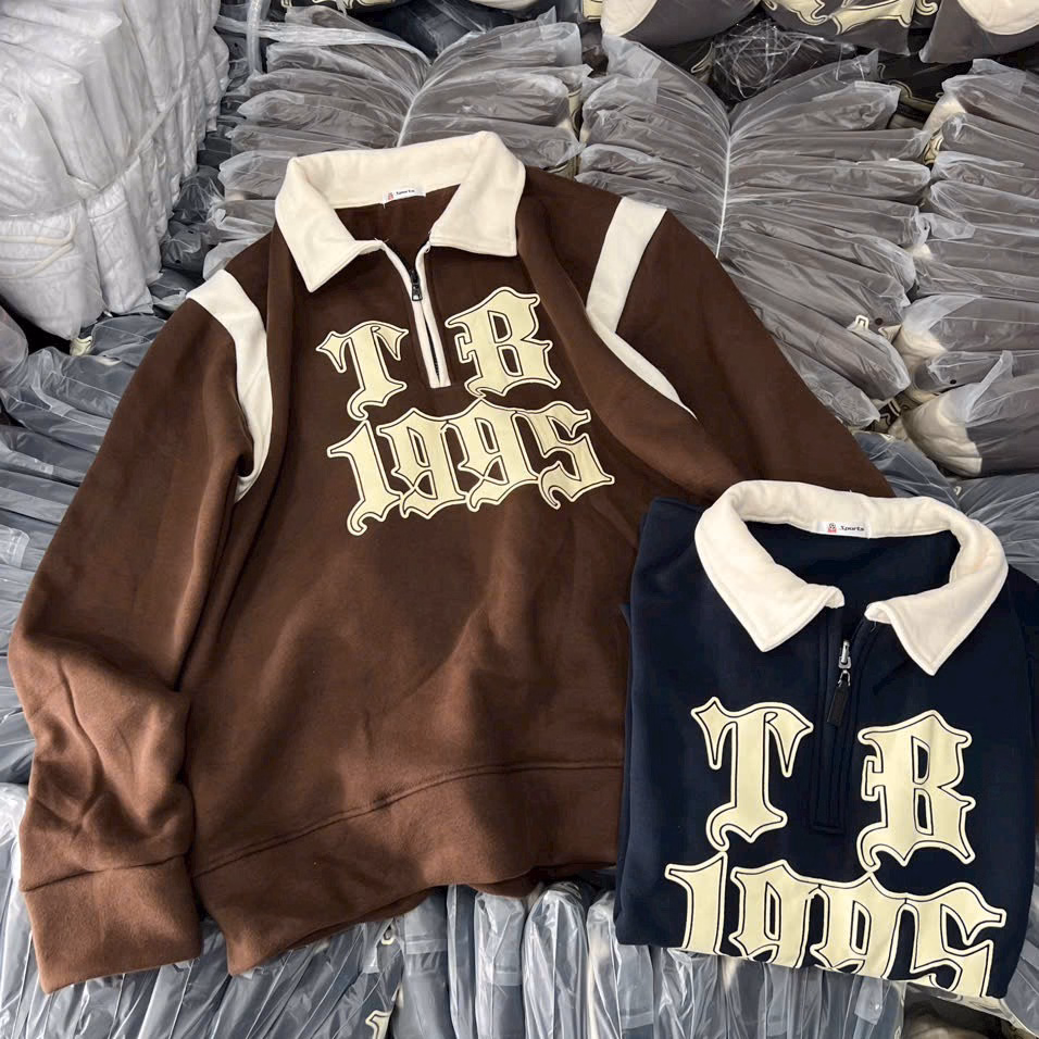 Áo Hoodie Nam Nữ In Nổi Chữ Tb 1995 Chất Liệu Vải Nỉ Dày Dặn Dáng Cổ Bẻ Xịn Form Rộng Hàng Hot Trend-Htm Fashion