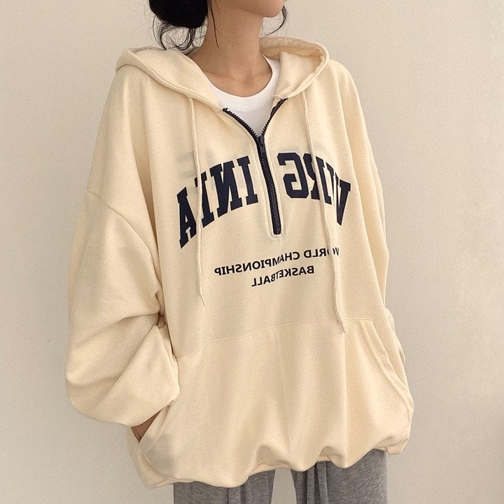 Áo Hoodie Nỉ Nam Nữ Có Nón Cổ Thiết Kế Khóa Kéo In Chữ Ainigriv – Htm Fashion