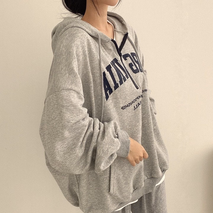 Áo Khoác Dây Kéo Vải Nỉ Phối Sọc Thân In Nổi Chữ Ở Mũ, Có Túi Trong Rộng Tp60 – Golden Dream