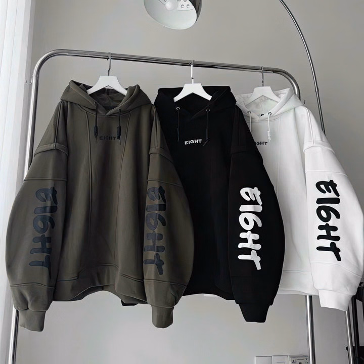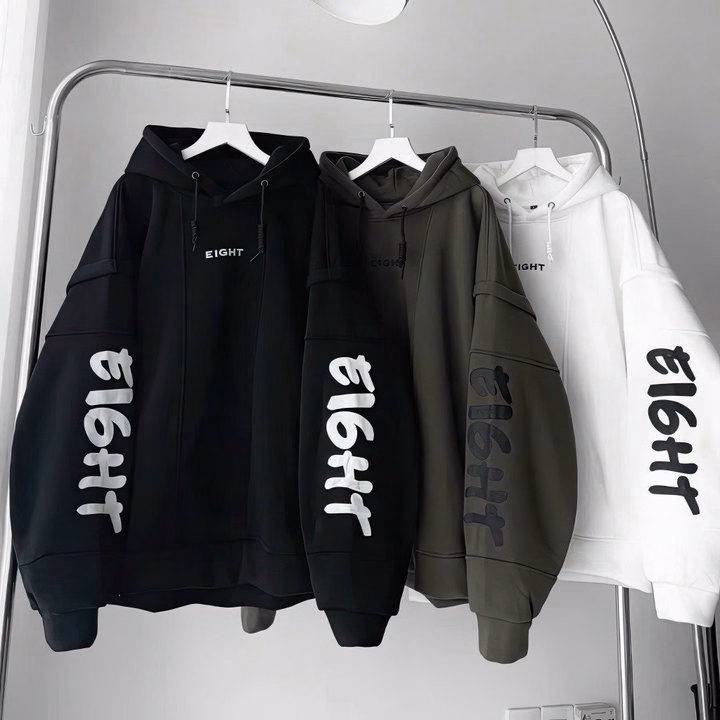 Áo Hoodie Nỉ Nam Nữ In Eight Chữ Cánh Tay Áo, Phối Kiểu Hot – Htm Fashion