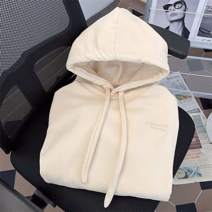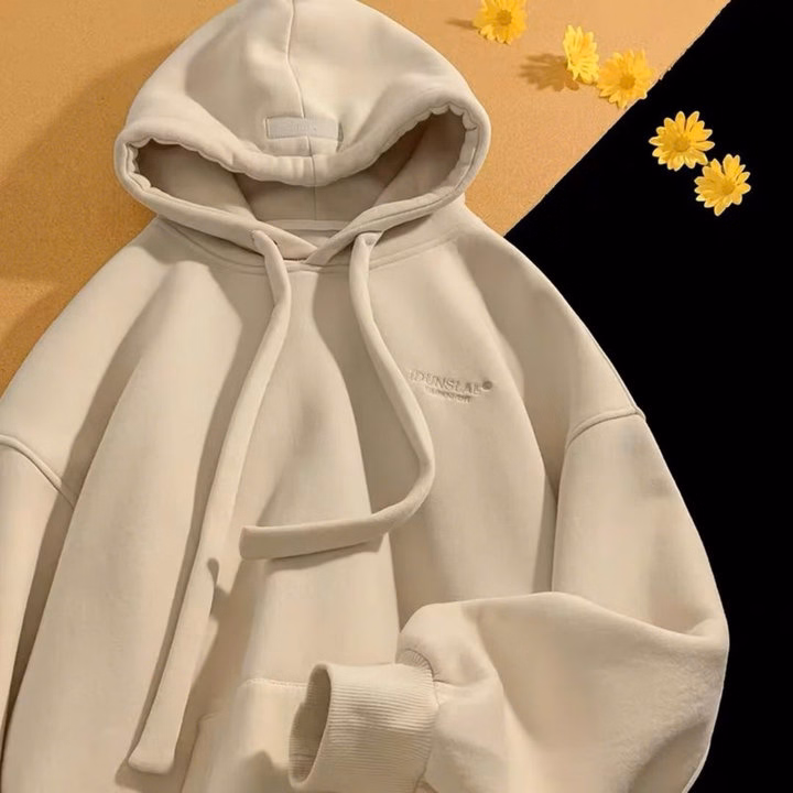 Áo Hoodie Trơn Dây To Form Rộng Unisex Mũ 2 Lớp