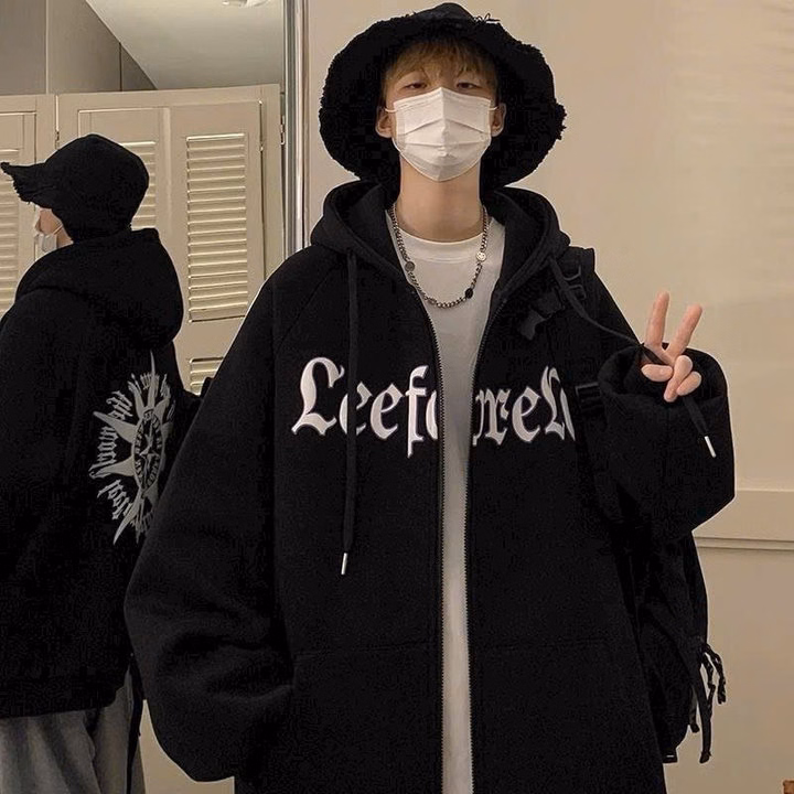Áo Khoác Dây Kéo Vải Nỉ Phối Sọc Thân In Nổi Chữ Ở Mũ, Có Túi Trong Rộng Tp60 – Golden Dream