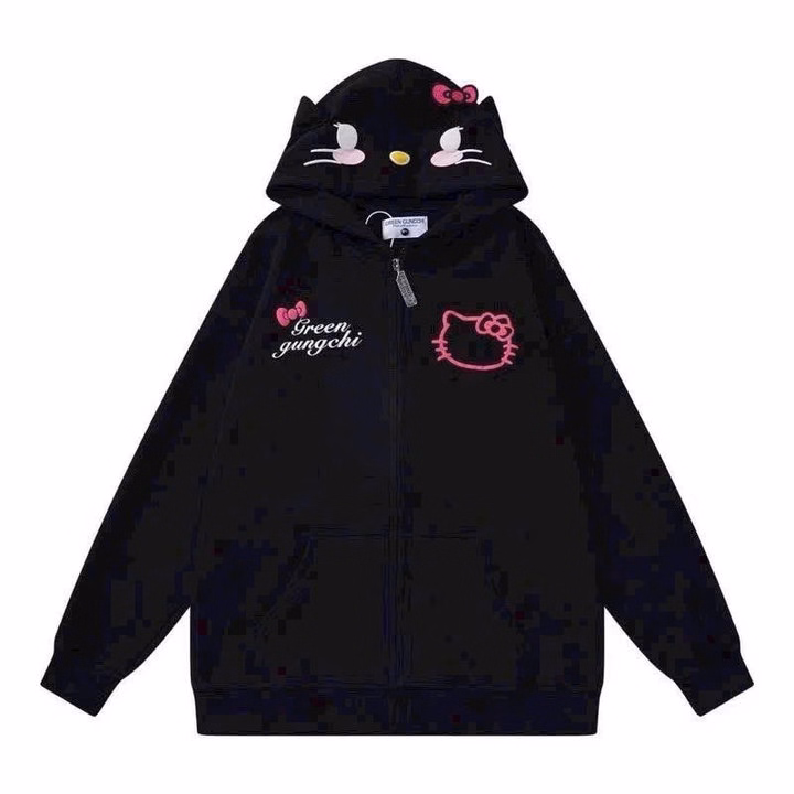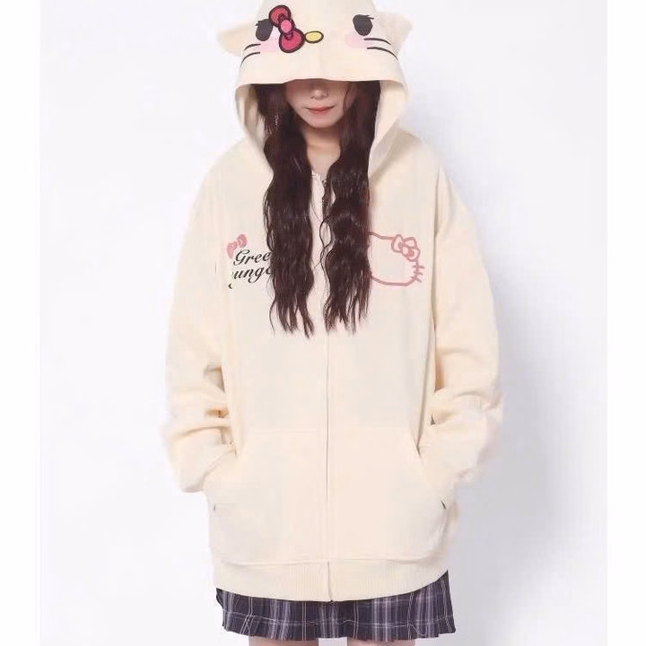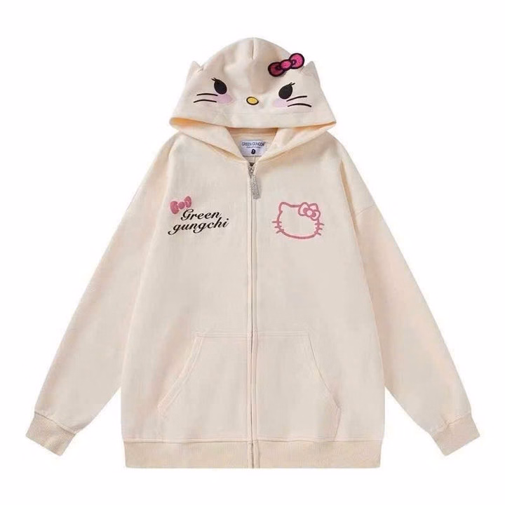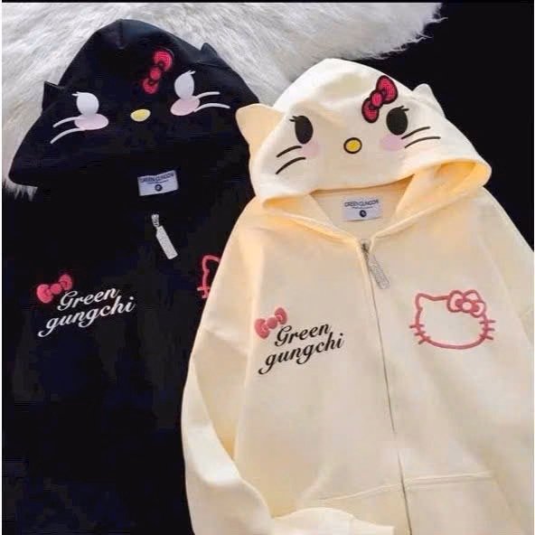 Áo Hoodie Zip Khoác Nỉ Hello Kitty Có Nơ Mũ Tay Bồng Nhiều Màu Form Rộng Unisex Nam Nữ Xinh Xắn – Tp900