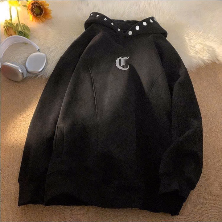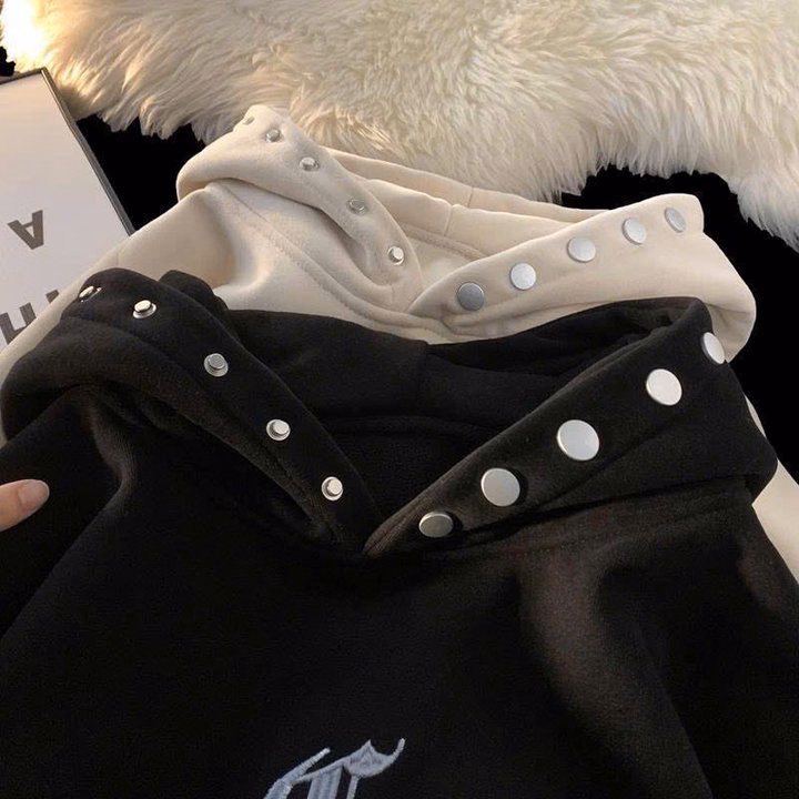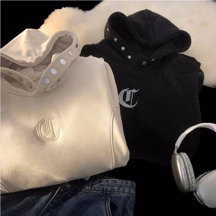 Tên sản phẩm: Áo Hooodie Vải Nỉ Dày Dặn Unisex Nam Nữ Thêu Chữ D Phối Cúc Bấm Mũ Như Hình Form Rộng Tp334 – Phương Store
