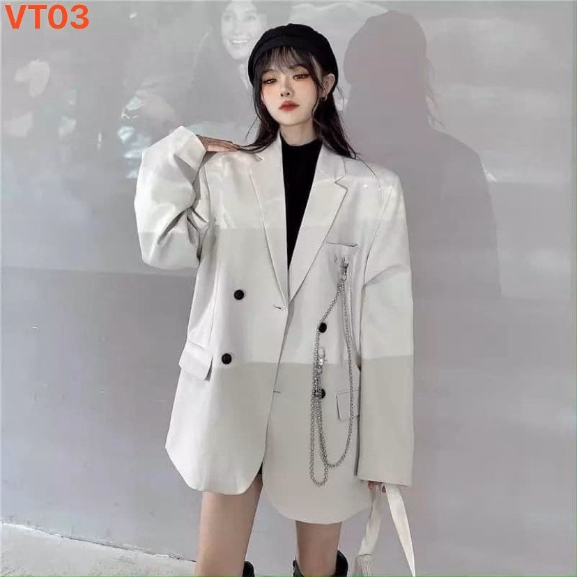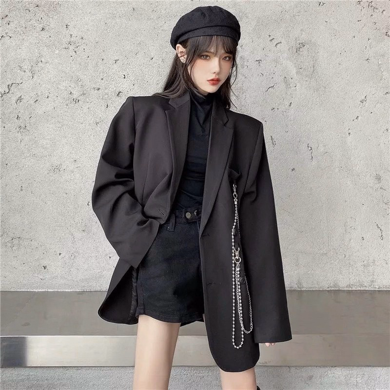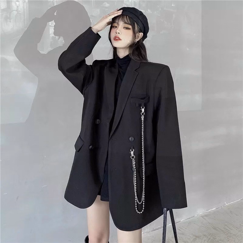 Áo Khoác Blazer Hàn Quốc Nữ Có Phụ Kiện Big Size Mặc Rộng Như Hình – Htm Fashion