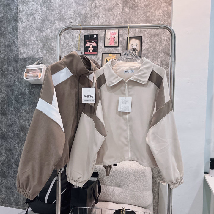 Áo Khoác Bố Nhung Cổ Trụ Không Nón Thiết Kế Khóa Kéo Phối 2 Màu Mẫu Mới – Htm Fashion