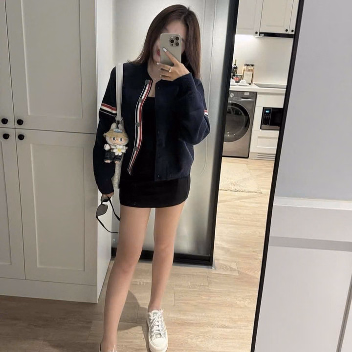 Áo Khoác Bomber Phối Sọc Tay, Chất Liệu Len Dệt Kim Dày Dặn, Mẫu Mới 2024 Dành Cho Bạn Nữ – Chipxinhxk