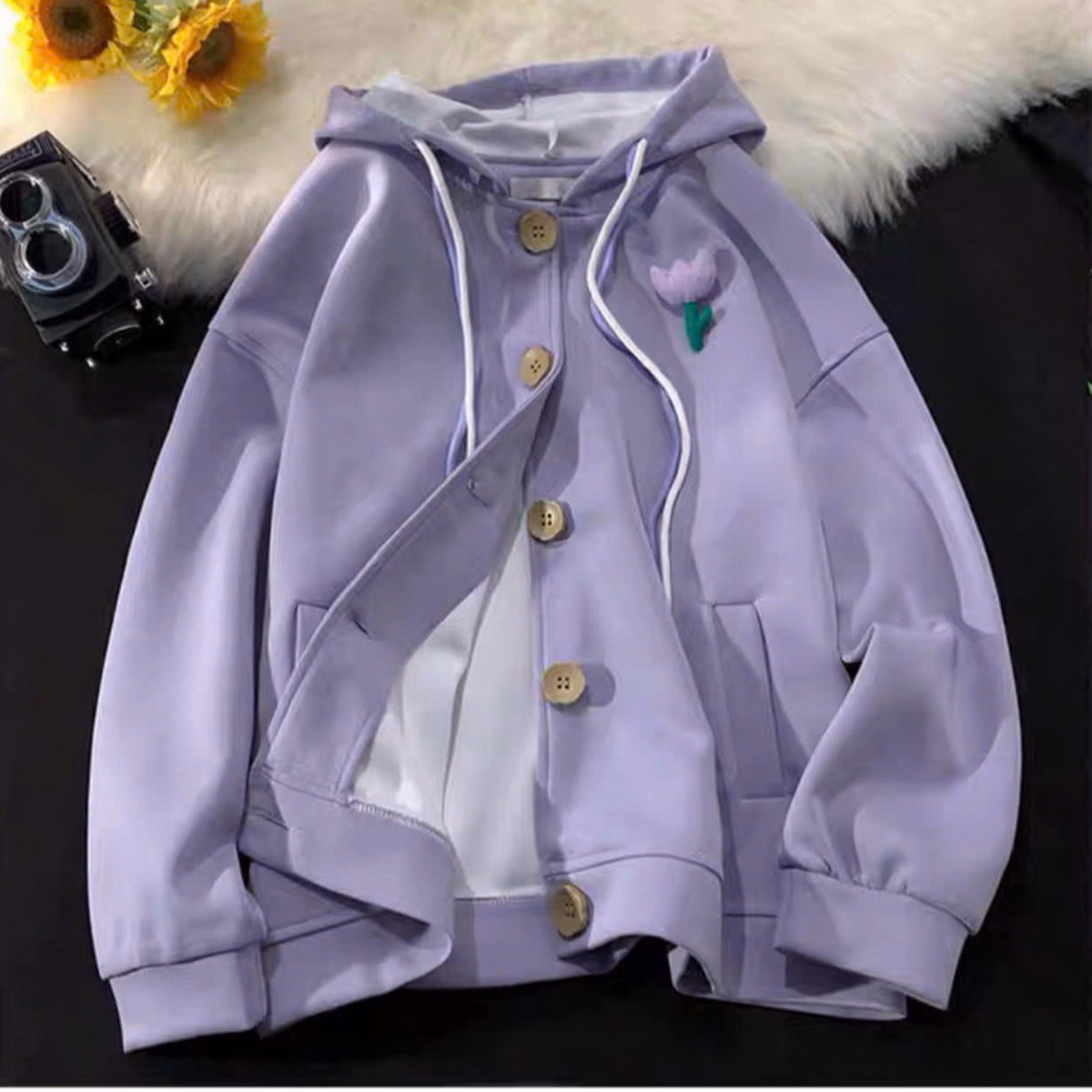 Áo Khoác Cadigan Có Nón Dây Rút Logo Thêu Hoa Họa Tiết Form Rộng Phối Theo Phong Cách Sành Điệu Và Xịn Hot Trend Htm- Fashion